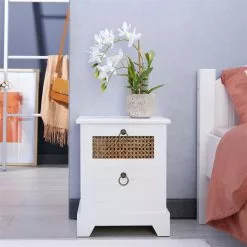 CARO-Möbel Nachttisch PADMA Mit 2 Schubladen Und Wiener Geflecht, Weiß