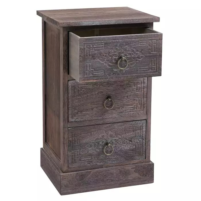 CARO-Möbel Nachttisch RAJA Mit 3 Schubladen Und Wiener Geflecht, Grau