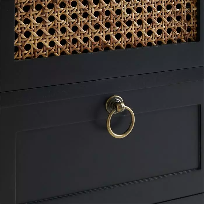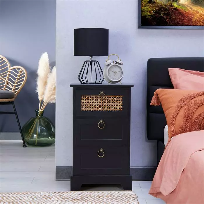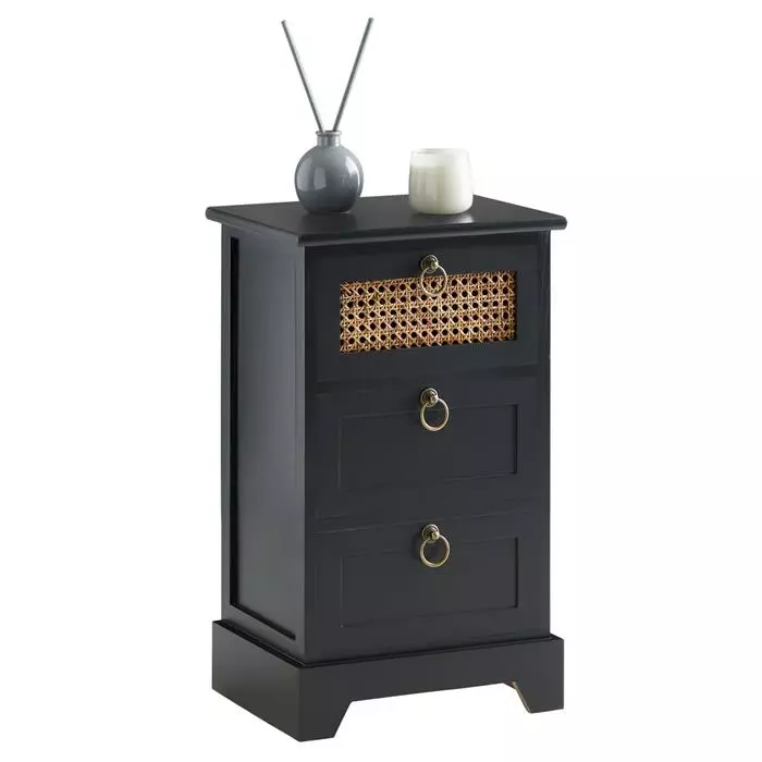 CARO-Möbel Nachttisch VANIKA Mit 4 Schubladen Und Wiener Geflecht, Schwarz
