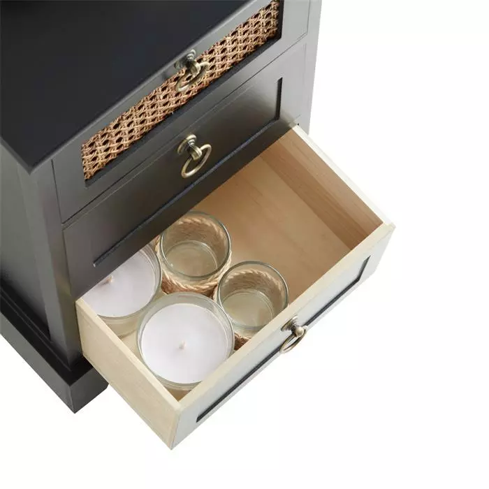 CARO-Möbel Nachttisch RAJA Mit 3 Schubladen Und Wiener Geflecht, Grau