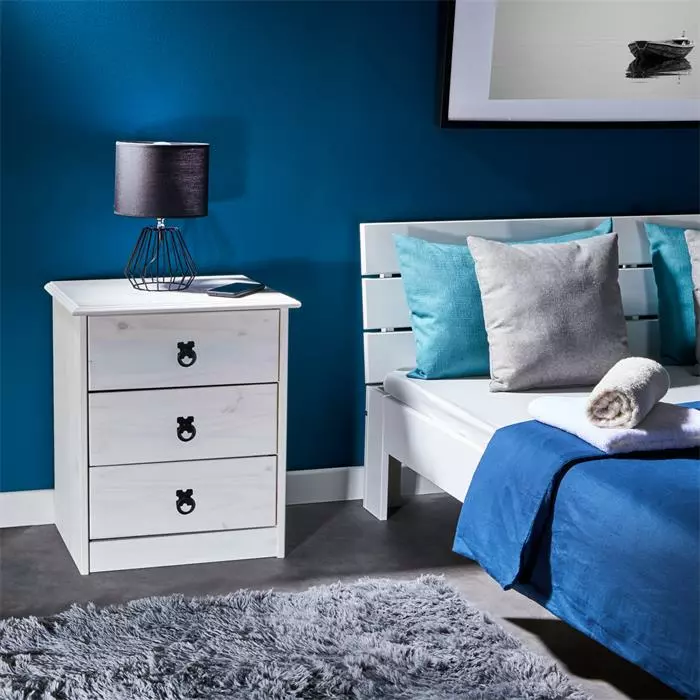 Schreibe die erste Rezension für „CARO-Möbel Nachttisch RESIDENCIA, Kiefer Massiv Weiß, Mit 3 Schubladen“ Antwort abbrechen