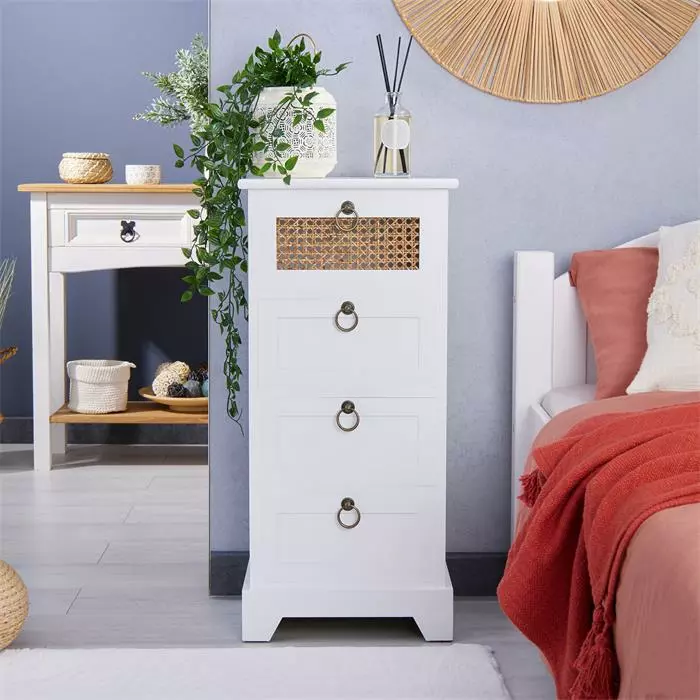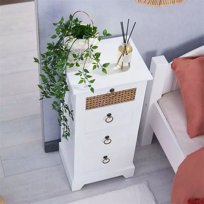 CARO-Möbel Nachttisch RAJA Mit 3 Schubladen Und Wiener Geflecht, Weiß