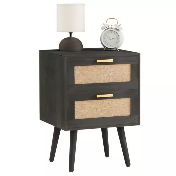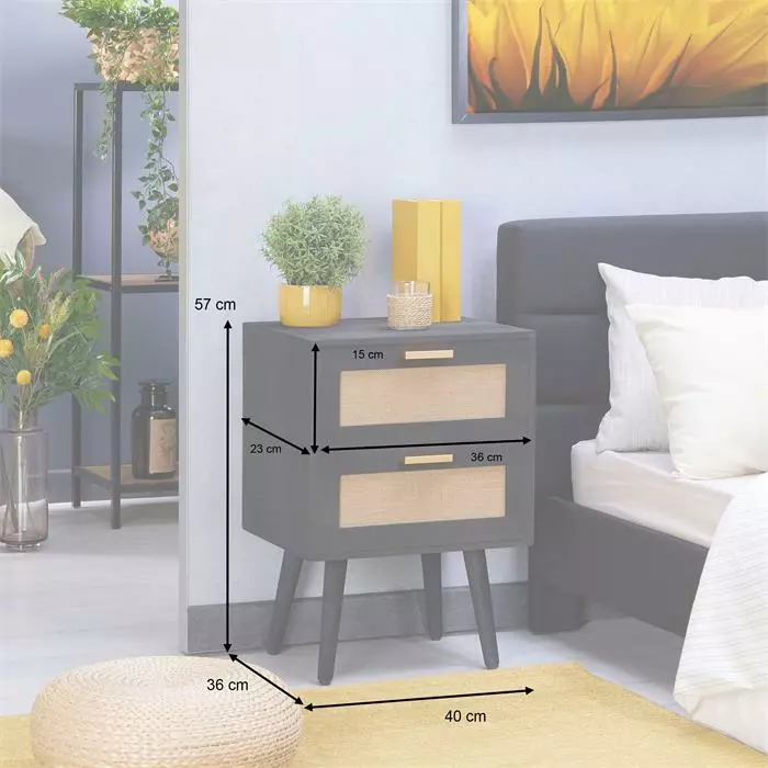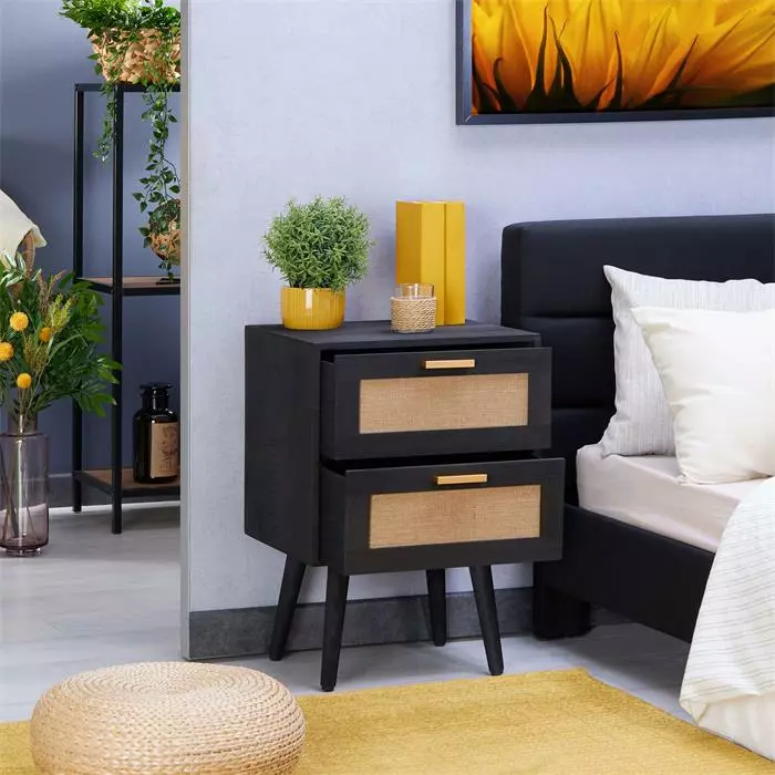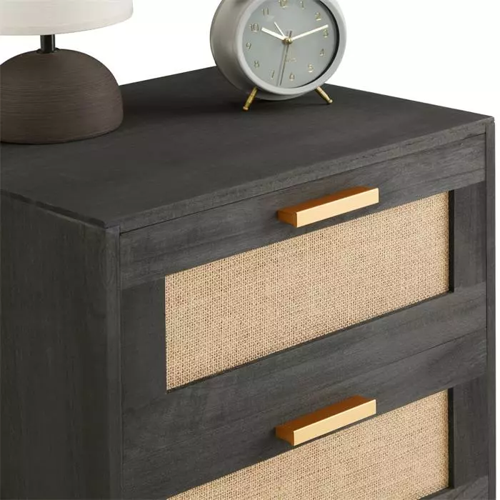CARO-Möbel Nachttisch ROSHNI Mit 3 Schubladen Und Wiener Geflecht, Schwarz