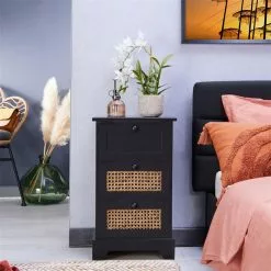 CARO-Möbel Nachttisch ROSHNI Mit 3 Schubladen Und Wiener Geflecht, Schwarz