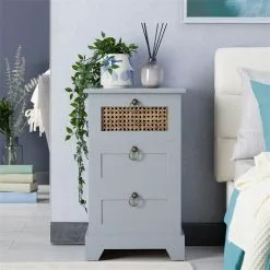 CARO-Möbel Nachttisch RAJA Mit 3 Schubladen Und Wiener Geflecht, Grau