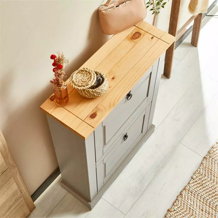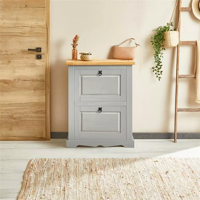 IDIMEX Schuhkipper BASIL Mit 2 Kipper Und In Natur, Kiefer Massiv