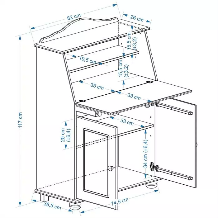 - Aufbaumaß 82 x 117 x 38,5 (B x H x T)