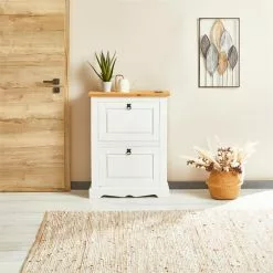 IDIMEX Schuhkipper TEQUILA, Kiefer Massiv, Weiß/braun, Mit 2 Klappen, Mexiko