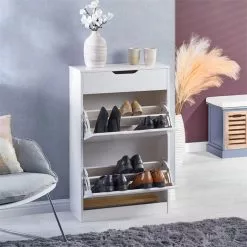 IDIMEX Schuhkipper BASIL Mit 2 Kipper Und 1 Schublade In Weiß, Kiefer Massiv