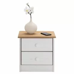IDIMEX Nachttisch RONDO Aus Kiefer Mit 2 Schubladen, In Weiß/braun
