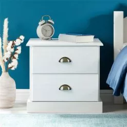 IDIMEX Nachttisch RONDO Aus Kiefer Mit 2 Schubladen, In Weiß